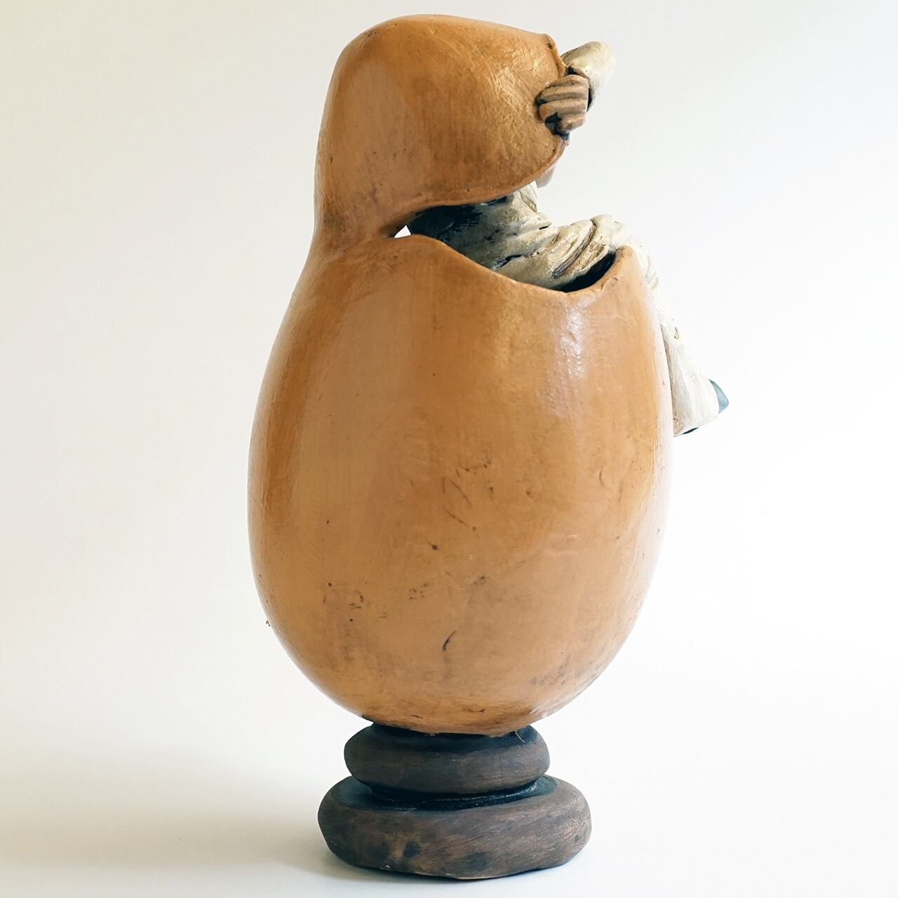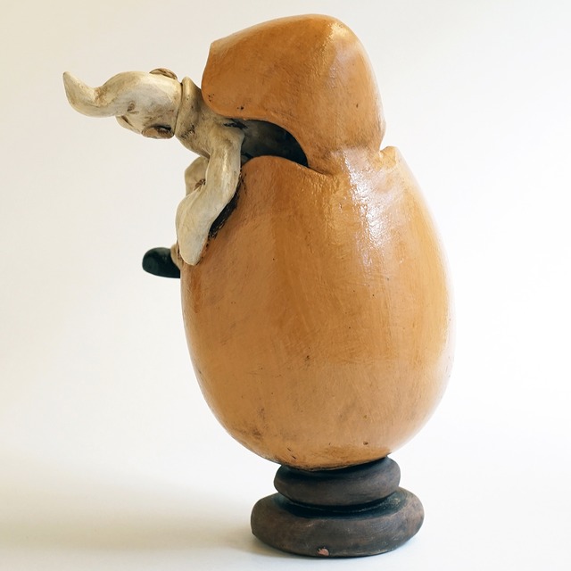 <商品番号:dBF-1> 高さ:15cm 幅:8cm 奥行き:10cm(大体の大きさです) 手作りですので、写真とは色や形が少し異なる場合があります。ご了承ください。 素材はテラコッタです。 新しいことを始める時の縁起物です。