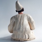 高さ:17cm 幅:13cm 奥行き:12cm(大体の大きさです) 手作りですので、写真とは色や形が少し異なる場合があります。ご了承ください。 素材はテラコッタです。 あぐらをかいて座っています。